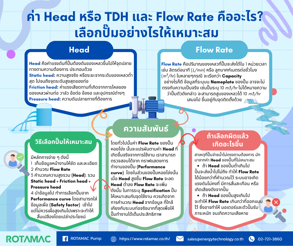ค่า Head และอัตราการไหล (Flow Rate) คืออะไร? เลือกปั๊มอย่างไรให้เหมาะสม? เวลาจะเลือกซื้อปั๊ม หลายคนอาจเคยได้ยินคำว่า Head (TDH) กับ Flow Rate อยู่บ่อย ๆ สองคำนี้สำคัญมาก เพราะมันจะบอกว่าปั๊มจะส่งของเหลวได้ไกลแค่ไหน และปริมาณของเหลวที่ไหลออกมาต่อชั่วโมงจะมากน้อยแค่ไหน วันนี้มาดูกันแบบเข้าใจง่าย ๆ ว่าแต่ละอย่างคืออะไร และจะเลือกยังไงให้เหมาะกับงานกันดีกว่าครับ อ่านต่อ : คลิกที่นี่เพื่อดูรายละเอียด |
