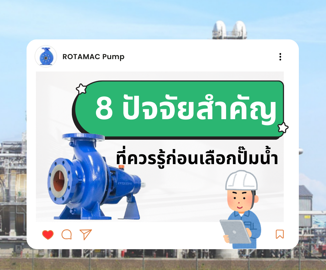 8 ปัจจัยสำคัญที่ควรรู้ก่อนเลือกปั๊มน้ำ การเลือกปั๊มน้ำควรพิจารณาหลายปัจจัย ทั้งอัตราการไหล เฮด คุณสมบัติของของเหลวที่นำไปใช้ ลักษณะการติดตั้งและปัจจัยที่เกี่ยวข้องอื่นๆ อ่านต่อ : คลิกที่นี่เพื่อดูรายละเอียด